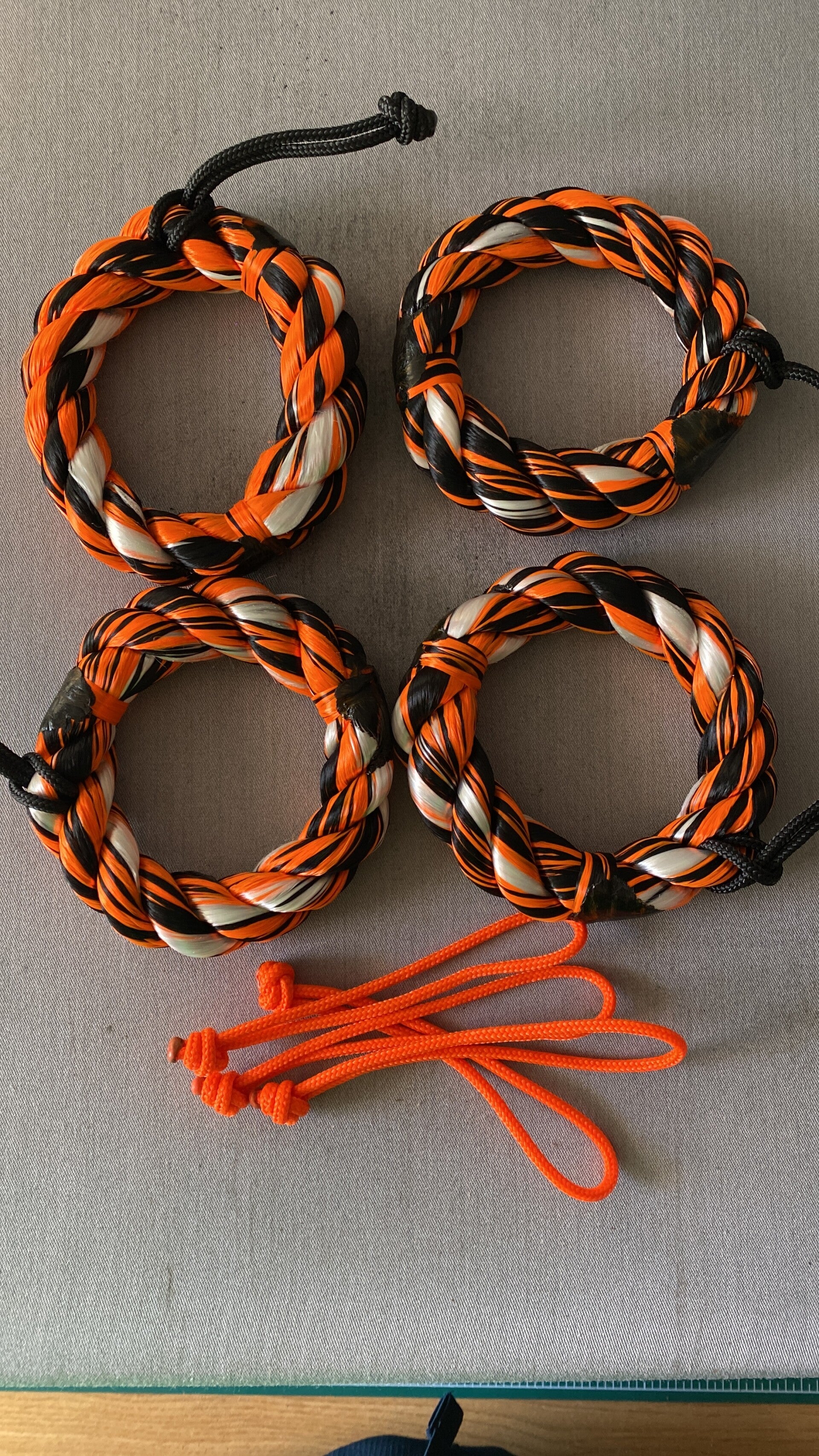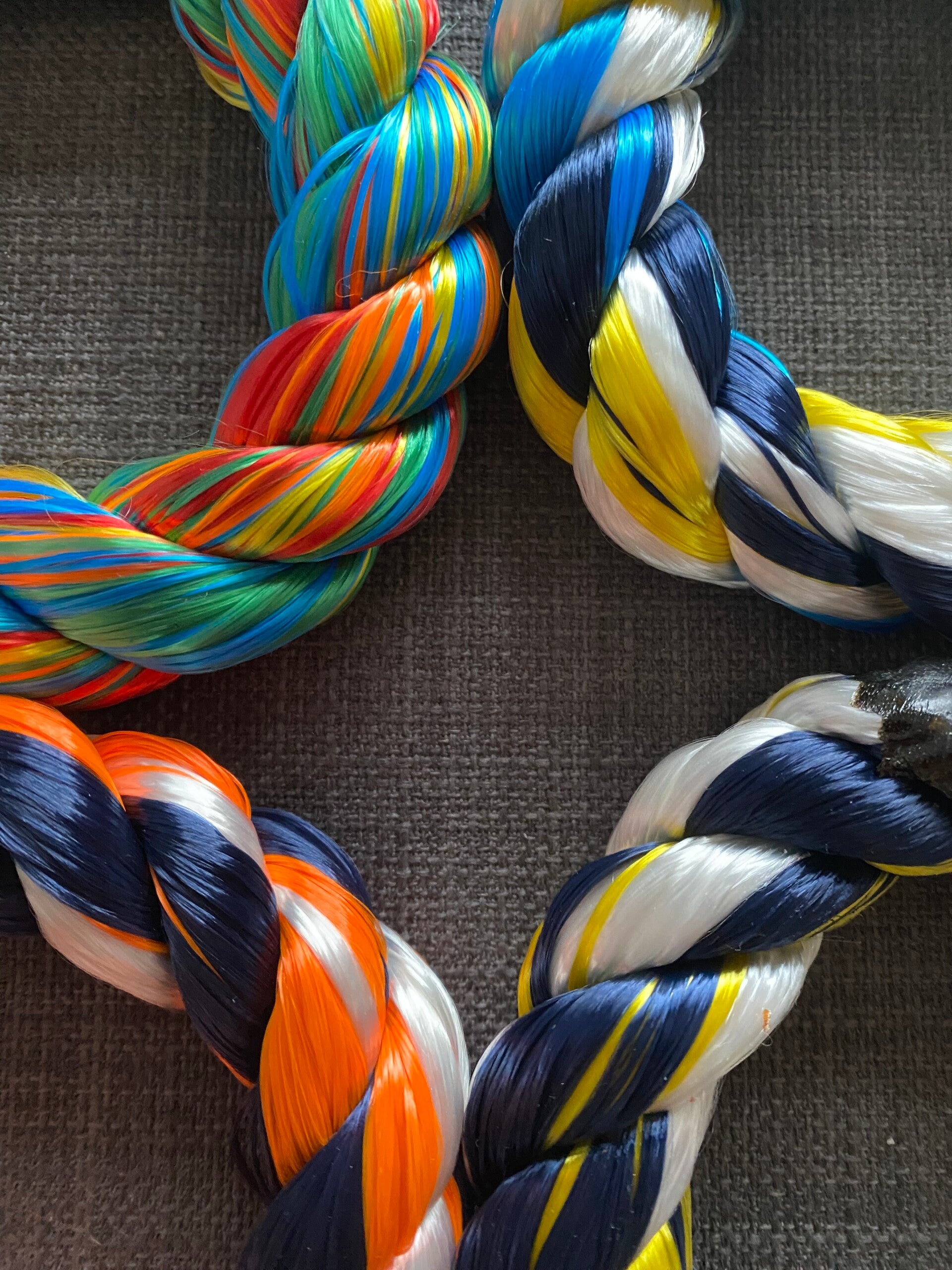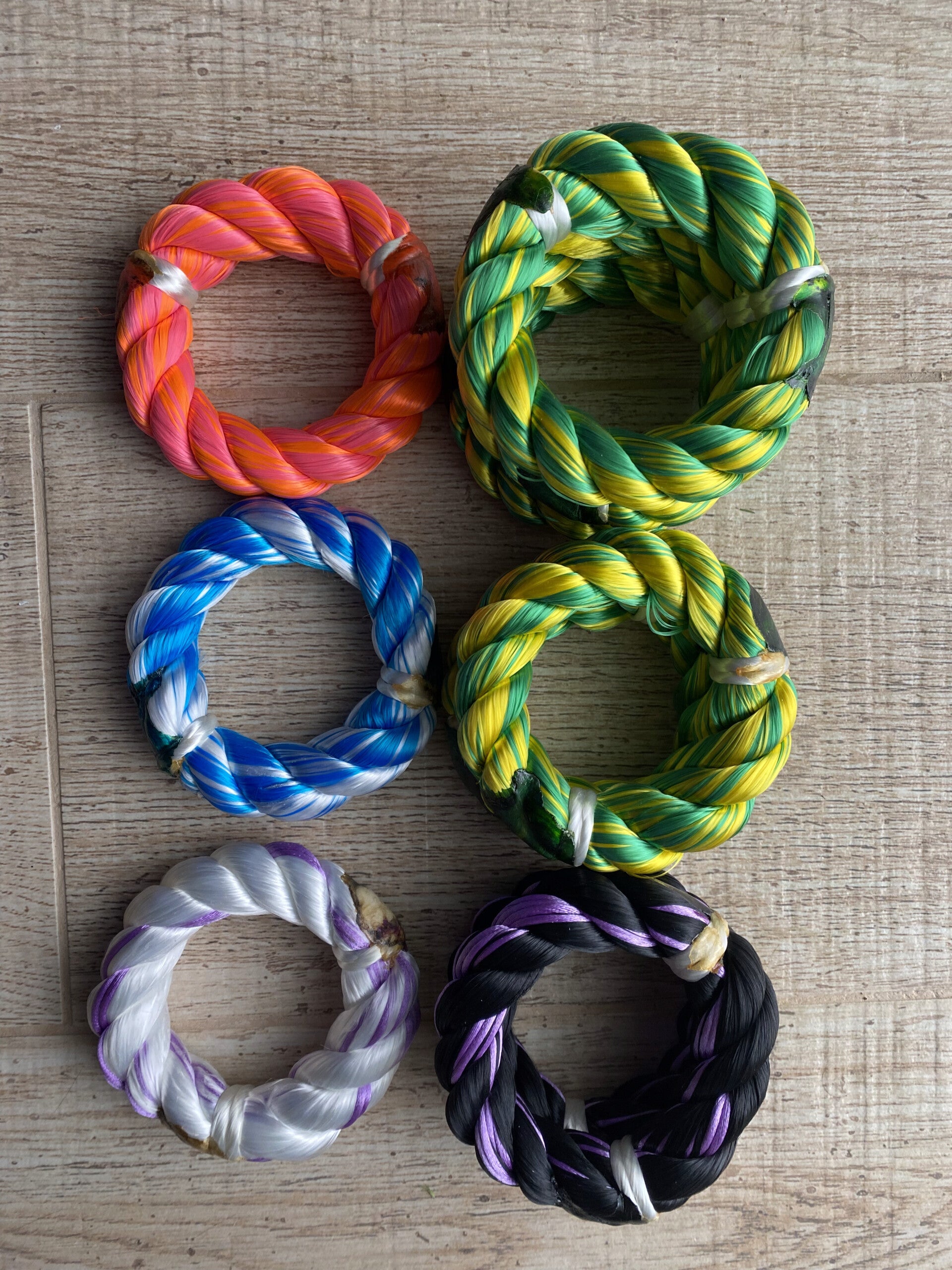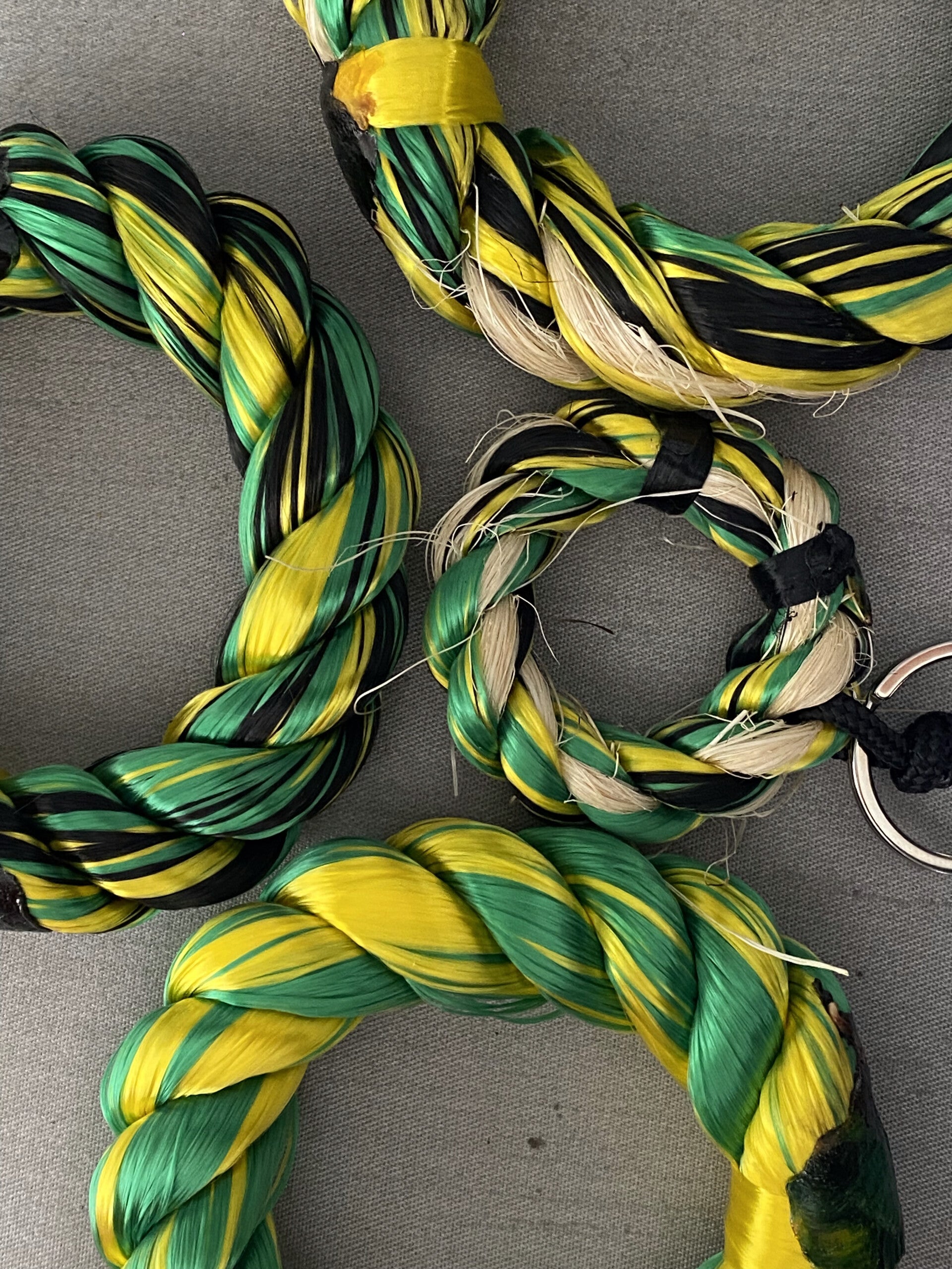 Los trenzados o agrupaciones de los colores de los estrobos son todos hechos a mano, y por ello es imposible hacer dos estrobos idénticos.