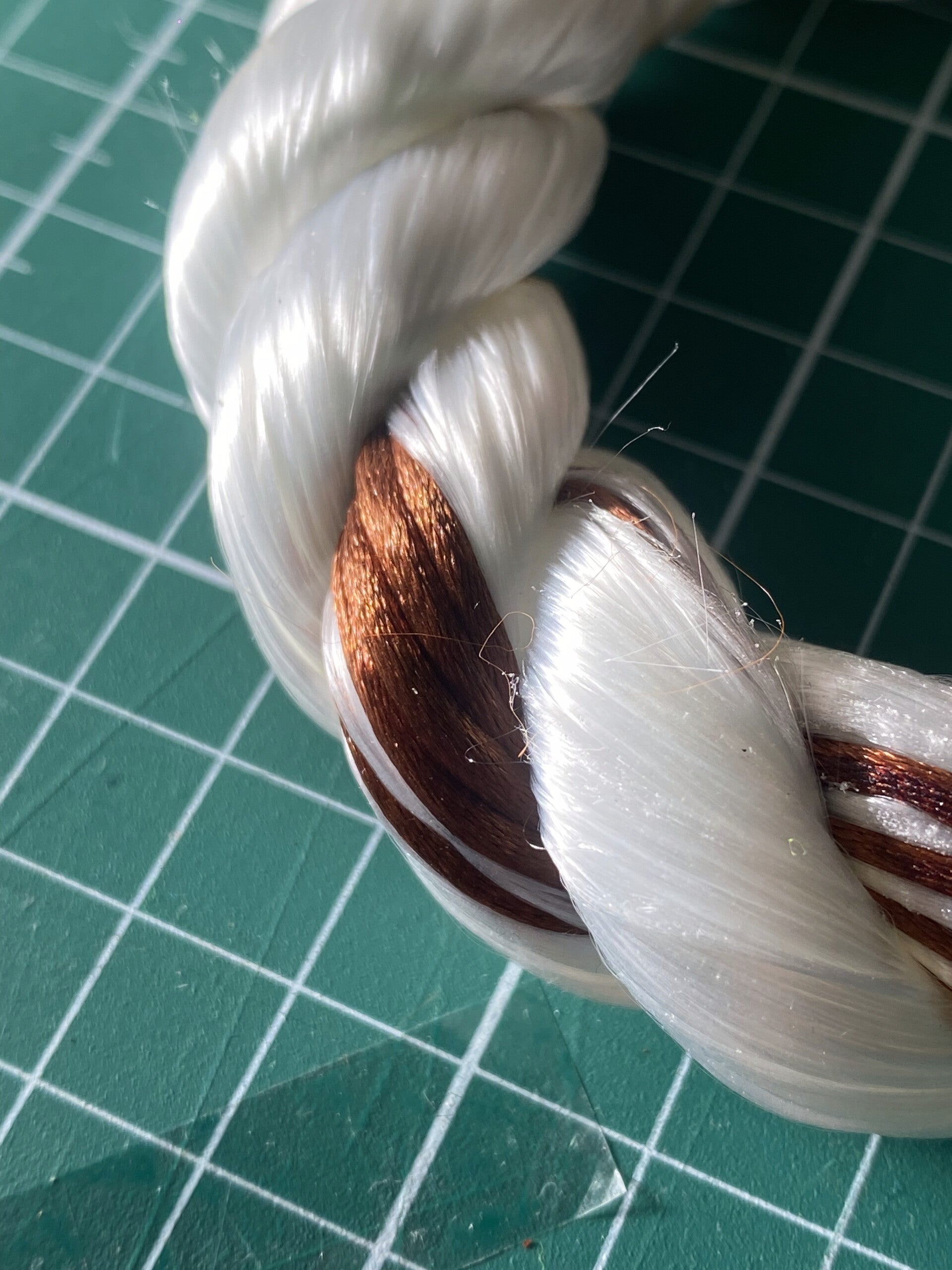Si le quieres añadir esparto, normalmente lleva 1 cabo de esparto, pero se puede añadir más cantidad de esparto e incluso se puede llegar a hacer el estrobo 100% de esparto, siempre manteniendo los grosores del estrobo deseados.