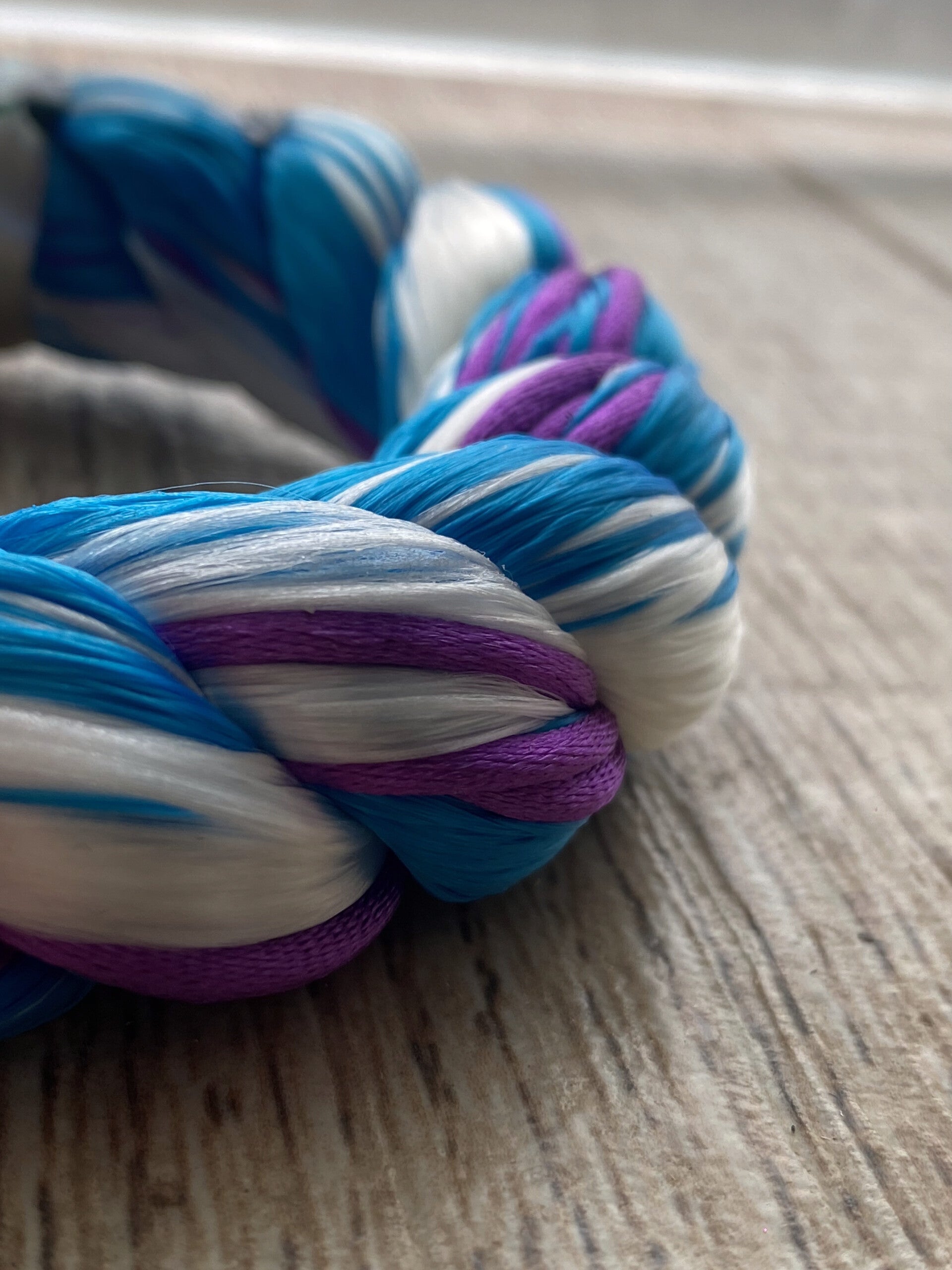 El modelo M26 (Modelo Premium) está compuesto por una base de Nylon blanco MATE y puedes añadirle poliéster brillante (colores) y personalizarlos como quieras. No hay límite de colores, pero la base de Nylos mate blanca representa como mínimo el 50% del estrobo. También como con los otros modelos le puedes añadir esparto si lo prefieres.