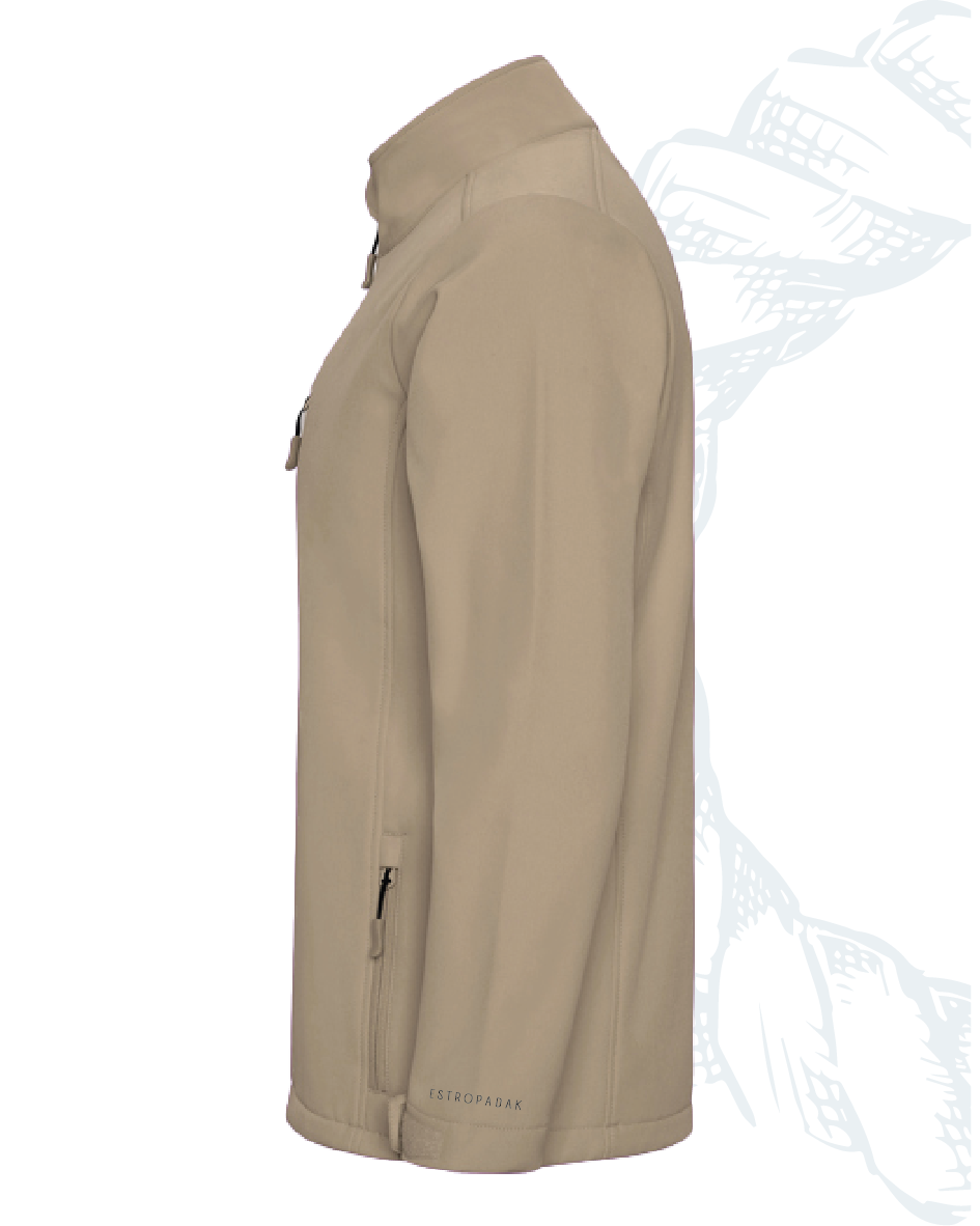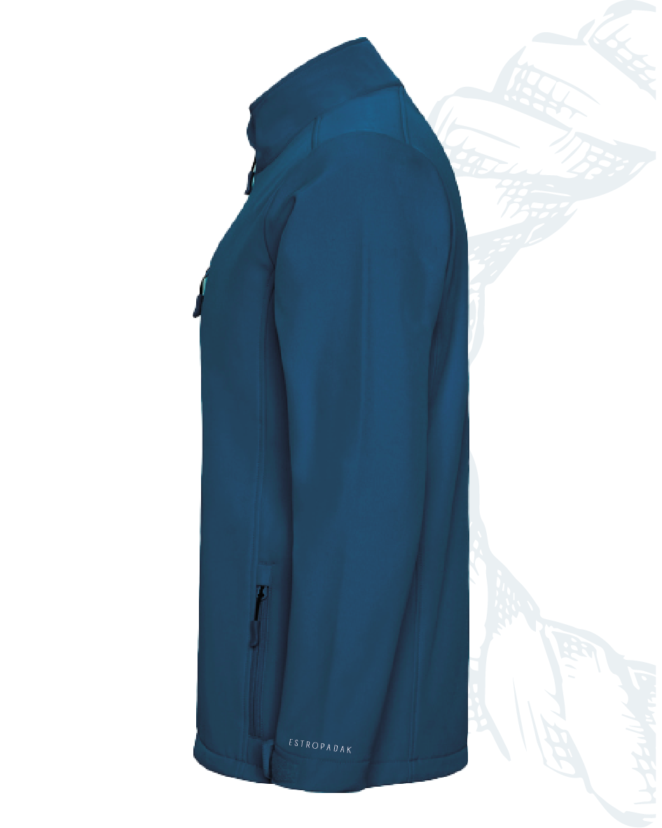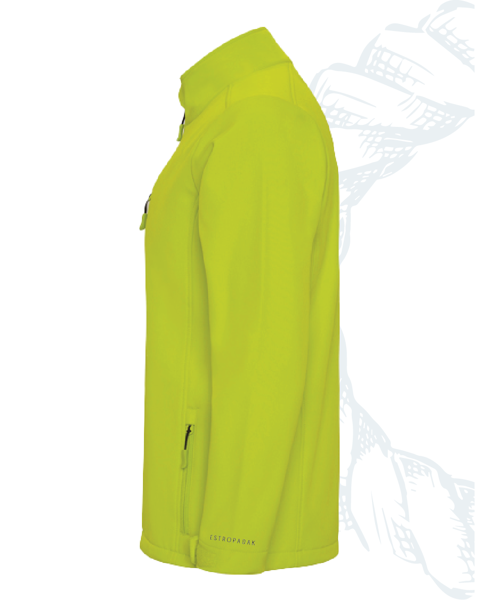 Chaqueta softshell de 2 capas con cremallera frontal invertida. Repelente al agua y resistente al viento. Interior en tejido micropolar. Dos bolsillos laterales y uno en pecho derecho con cremalleras invertidas. Protector de barbilla del mismo tejido invertido. Ajustadores laterales en el interior en tallas de adulto.